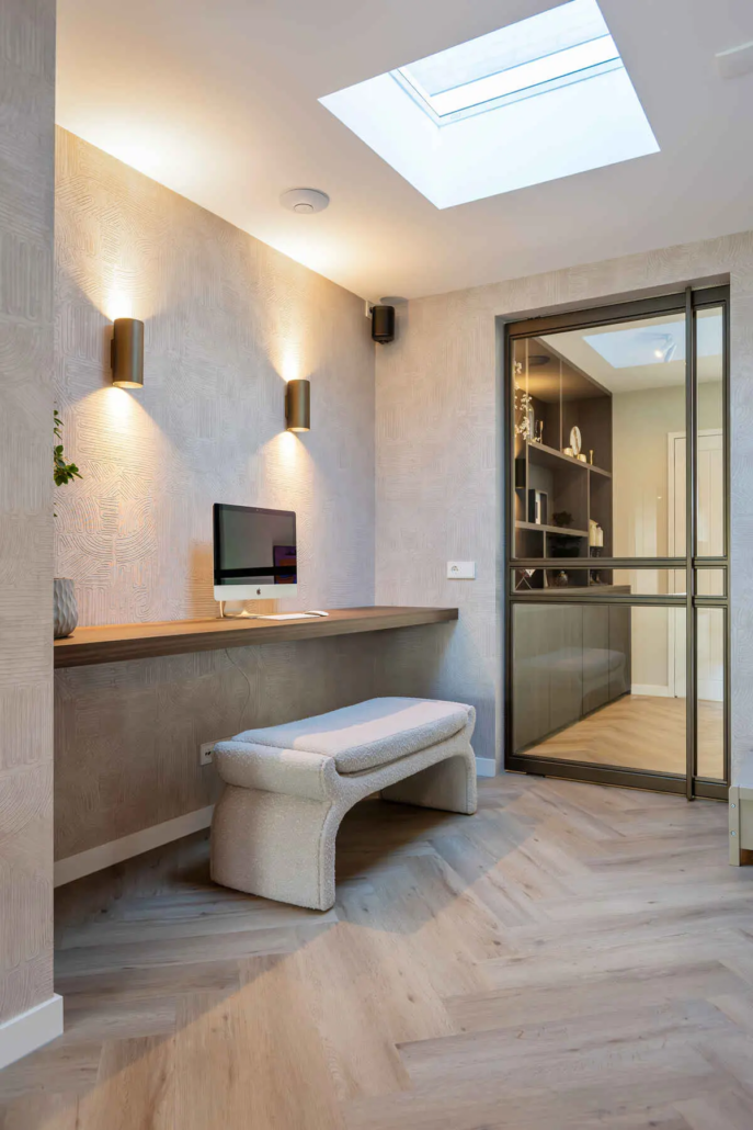 Ook de werkplek die Van den Bijtel realiseerde sluit naadloos aan op de rest van het interieur. “Die is ook door Van der Bijtel gemaakt”, vertelt Shirley.